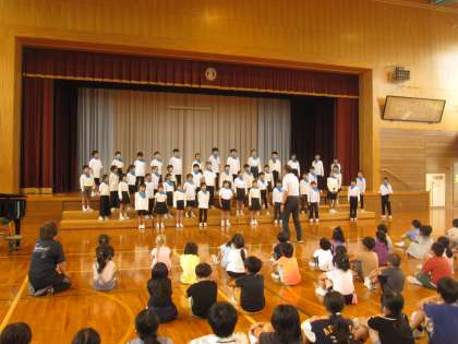いよいよ区域音楽会が近付いてきました。今日のいきいきタイムに全校のみんなに合唱を発表しました。他の学年からも感想をもらいました。3、4年生の皆さん、本番も素敵な歌声を響かせてください。