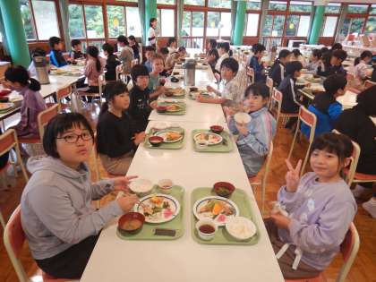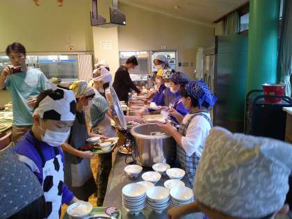 食事係がてきぱきと準備を行い、みんなでマナーを守っておいしくいただきました。
