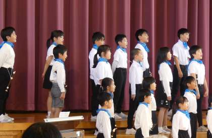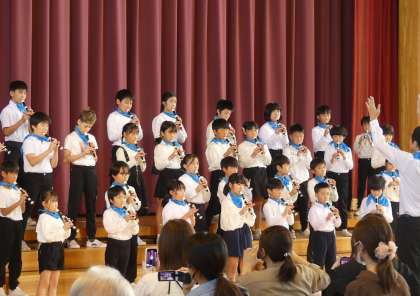 3・4年生は、「レッツゴー明日へ」「命のオーケストラ」の合唱と「オーラリー」のリコーダー合奏をしました。