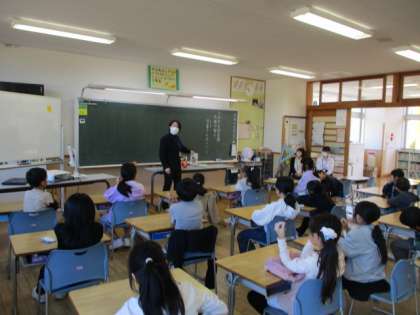 市立図書館の分館から3名の司書の方にお越しいただき、読み聞かせや本の紹介をしていただきました。これからもいろいろなジャンルの本に親しんでいこうと思います。