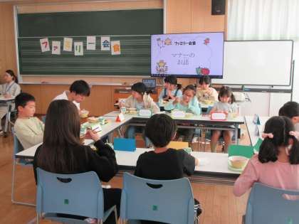 今日は、青団1、2班がそれぞれ集まって会食をしました。会食になるとみんな黙々と食べているので、教室での給食の様子等を聞いてみるとちょっとした会話も出てきました。