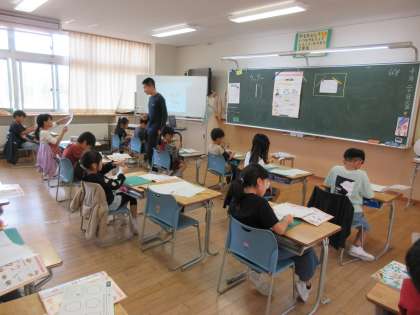 廊下にはスイミーの赤や黒の魚に、各自が様々な活動でがんばっている写真を貼ったものが飾ってあります。