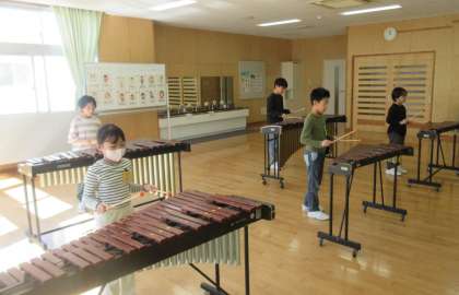 音楽科「ゆかいなもっきん」の学習では、リコーダーと木琴、鍵盤ハーモニカで合奏をすることを目当てに練習をしています。今日は、はじめて木琴にさわり、真剣に練習していました。