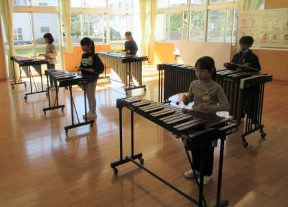 音楽科「ゆかいなもっきん」の学習では、リコーダーと木琴、鍵盤ハーモニカで合奏をすることを目当てに練習をしています。今日は、はじめて木琴にさわり、真剣に練習していました。