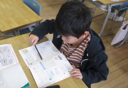 算数科ではかけ算をしています。今日は5の段の九九を何度も唱えました。一人一人が真剣に「五一が5、五二10…」と声に出して唱えていました。