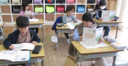 算数科ではかけ算をしています。今日は5の段の九九を何度も唱えました。一人一人が真剣に「五一が5、五二10…」と声に出して唱えていました。