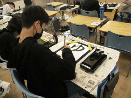 書写の時間です。ひらがなで「ゆり」と書いていました。ひらがなの方が筆の運びやつながりが意外と難しいのですね。
