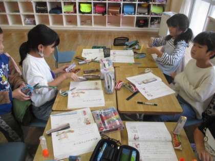 今日は、教科書に書いてある作り方を見ながら、実際に馬のおもちゃを作ってみました。切り方や大きさなど、説明や絵を確認しながら活動を進めていました。