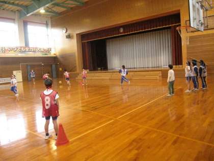 体育でキックベースをしています。ボールを蹴るのも上手です。自分たちでジャッジしながらゲームを進めています。