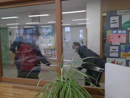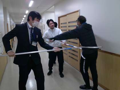 不審者が校舎内に入ってきたときの訓練を行いました。放送での知らせ方、警察が到着するまでの各教職員の動きなどを確認しました。