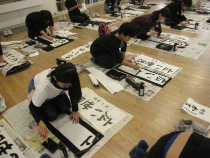 5年生にもなると、一人一人が真剣に書き初めに向かっています。