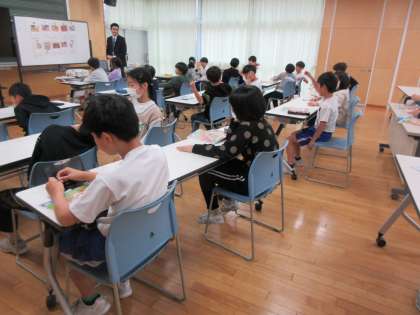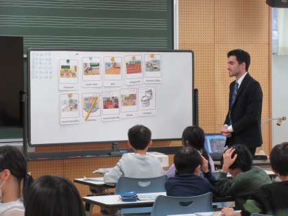 校舎内のいろいろな場所を英語で何というかを、ゲームを通して楽しく学んでいるところです。