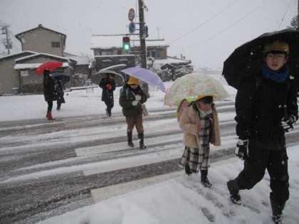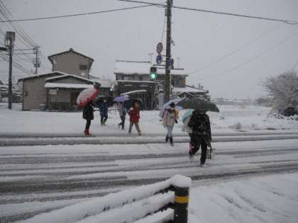 雪の朝となりました。今日で長かった2学期も最終日を迎えます。雪の降る中、がんばって歩いていました。