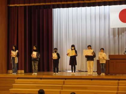 授賞伝達や冬休みの過ごし方についてお話を聞きました。