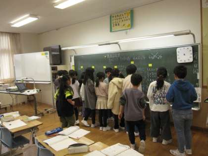 九九しりとりをしていました。黒板いっぱいに九九が書かれていました。九九はこれからの算数の基礎となります。3学期に確実に覚えましょう。