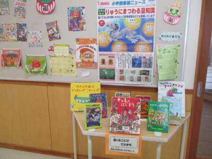 司書の先生が「辰年」にちなんだコーナーをつくってくれました。十二支で「龍」だけがなぜ空想上の生き物なのでしょう。そんな疑問を抱きながら読書に親しんでほしいと思います。