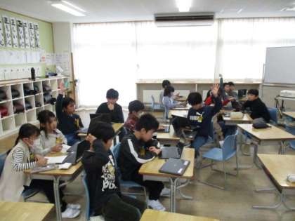 プレゼンテーションソフトにまとめた「水橋のすてき」を確認したり、紹介したりしています。