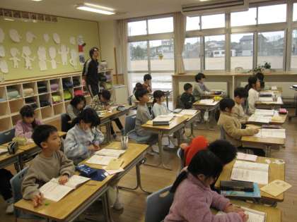 算数で4けたのしくみを学習しています。10集まると次の位にうつることが分かってきました。「1000が10個で10000だ」という声も聞こえてきました。