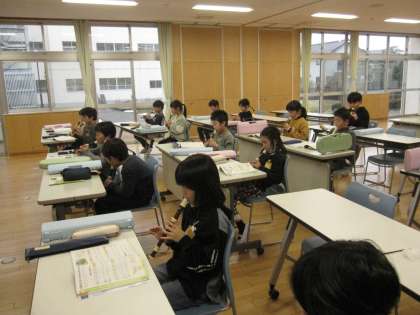 音楽は音楽専科の先生が指導しています。流れるようなピアノ伴奏に乗って、既習曲をリコーダーで演奏しています。
