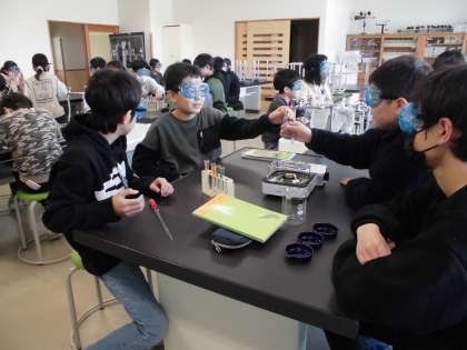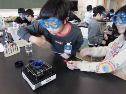 理科の学習で5種類の水溶液の性質を調べる実験を行いました。アンモニアのにおいを初めて嗅ぎ、「つんとするにおい」のする水溶液というものを実験を通して理解しました。
