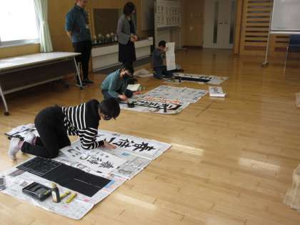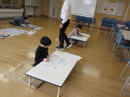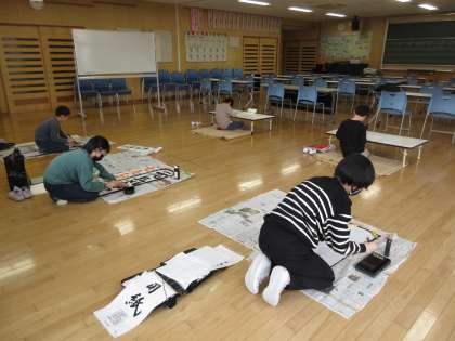 県の書初大会に各学年の代表者が参加します。気持ちを集中させて熱心に練習に取り組んでいました。