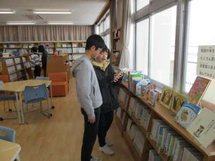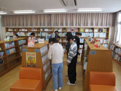 図書室で本を借りていました。読書に親しみ、読解力の向上を目指したいですね。