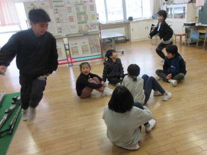 1階では、ハンカチ落とし、折り紙工作、2種類のゲームを楽しみました。