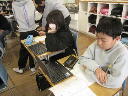 6年生 授業風景 公開日 2024/01/31 更新日 2024/01/31 活動の様子 算数の時間、自分で教科書やクロムブックなど学習方法を選び、問題を解いています。難しい問題なのでしょうか、何人か集まって考えています。
