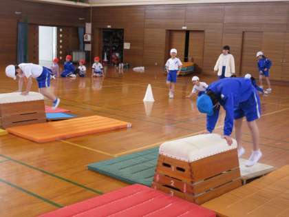 久しぶりの跳び箱です。自分たちで体操・準備をしっかり行い、練習に臨みました。跳び箱名人目指してがんばりましょう。