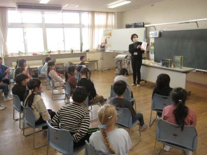 ちょうど水橋図書館の司書の方々が来校し、読み聞かせをしておられました。