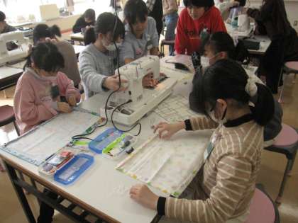 家庭科でランチョンマットをつくっています。ミシンを使って上手に縫うことができるでしょうか。