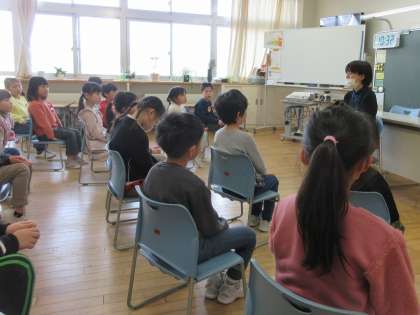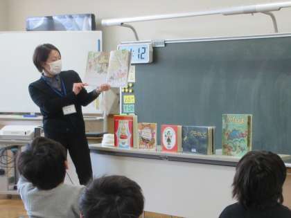 2月8日に水橋図書館から2名の司書の方が来られ、7つのお話を紹介していただきました。子供たちは、お話だけで聞く物語や絵を見ながら聞く絵本の世界に引き込まれ、楽しい時間を過ごしました。