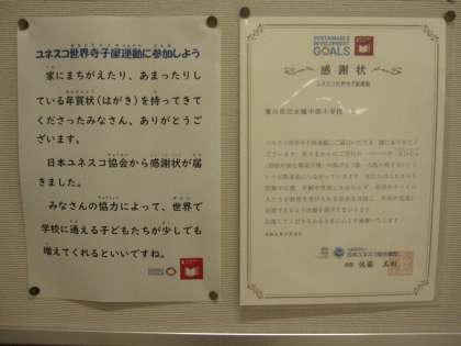 書き損じはがきの回収にご協力いただいた皆様、ありがとうございました。ユネスコ協会から感謝状が届きました。