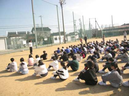 今日は児童や教職員への予告はせず避難訓練を行いました。休み時間なので外で遊んでいる児童もいましたが、担任がいなくとも集まった人から整列するなどこれまでの訓練を生かして行うことができました。