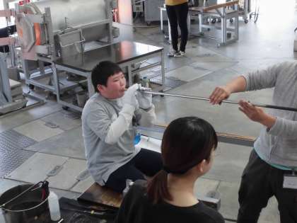 富山ガラス工房で卒業制作のガラスコップを作りました。初めてのガラス作り体験でも丁寧に教えていただき、全員が上手に作ることができました。今から完成が楽しみです。