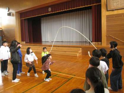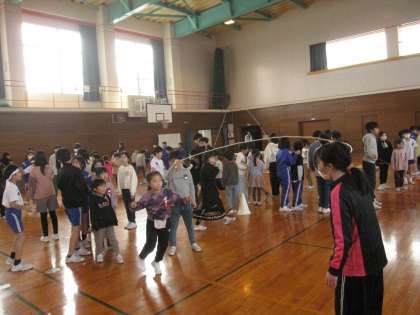 来週火曜日のなわとび交流会に向けて大縄跳びの練習にも力が入ってきました。低学年も上手になってきました。さあ2分間で一番多く跳ぶファミリーはどこでしょうか。
