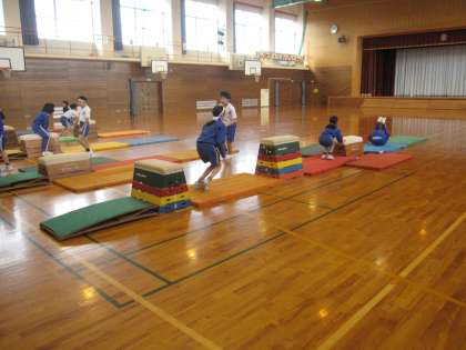 4年生 授業風景 公開日 2024/02/16 更新日 2024/02/16 活動の様子 跳び箱運動では、跳び箱やマットの上でいくつかの技を組み合わせて発表します。自分のオリジナルの技はどんなものなのか興味深いです。