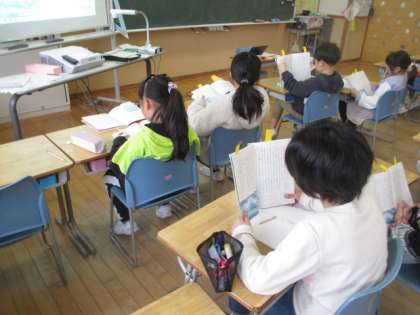 物語「スーホの白い馬」のお話を聞いている様子です。外国の昔話にも親しむことができました。