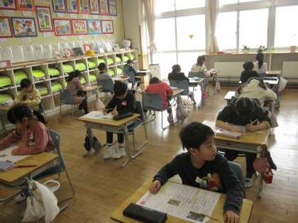 国語のテスト中でした。書き終えてももう一度確認している子供がいました。テストに取り組む態度が身に付いています。