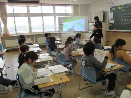社会科で昔と今の市の様子の違いを地図から読み取っていました。