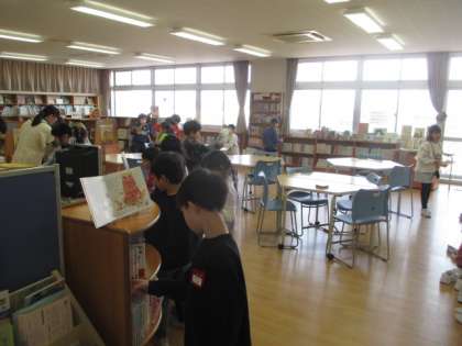 先週から図書ビンゴ週間が始まりました。図書室にはたくさんの子供たちが来て、本を借りたり、今まで読んだことのない本を読んだりしていました。