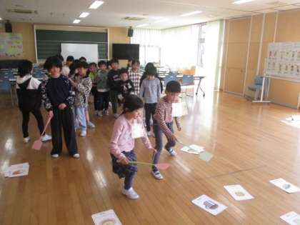 今日は食べ物の英語での言い方を学びました。3年生から始まる外国語活動に向けて意識が高まったようです。