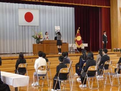 3月18日に卒業式がありました。卒業証書授与では、担任の呼名に応じ、凜とした返事や姿が印象的でした。失敗を恐れず自分から動くことや感謝を忘れないことを大切にこれからも歩んでほしいと思います。