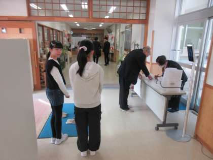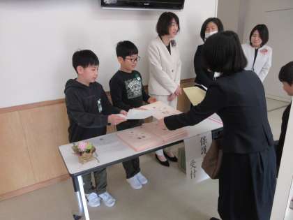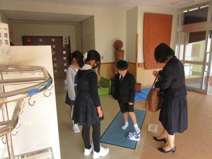 6年生は入学式当日、受付や誘導、1年生のお世話などをしました。言葉遣いやあいさつなど1年生によりそって行動しました。