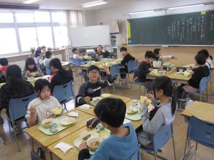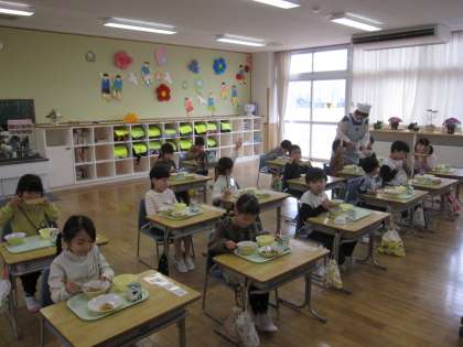 今日から一年生の給食も始まりました。「おいしい!」という声が聞こえてきました。