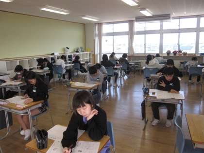 3年生以上で学力調査がありました。今日は国語と理科です。前学年の内容を確かめて臨みましょう。