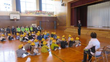 本日、交通安全教室がありました。低学年の歩行指導のため、警察や交通安全協会、PTAの方に来ていただきました。多くの皆様にご指導、ご協力をいただき、ありがとうございました。
