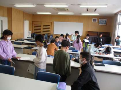 英語での自己紹介のやり方を教わったあと、みんなで自己紹介ビンゴをしました。