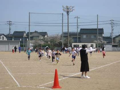トレーニングタイムが始まりました。青空の下、力いっぱい走っています。