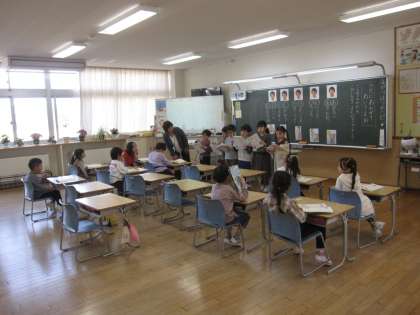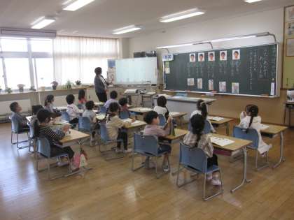 1年生、初めての学習参観でした。国語「うたにあわせて あいうえお」